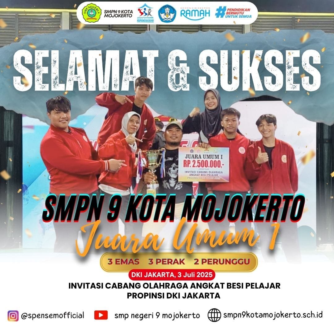 SMPN 9 Kota Mojokerto terus dan terus mendulang prestasi yang ngga kaleng-kaleng dari banyak kejuaraaan. Salah satunya kejuaraan angkat bes pelajar propinsi DKI Jakarta yang perlombaannya telah dimulai pada bulan Juni sampai dari Juli ini, benar-benar maksimal sekali.